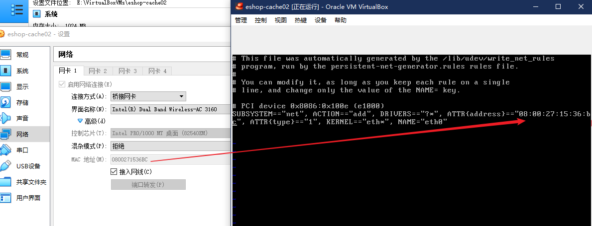 如图,修改 vi /etc/udev/rules.d/70-persistent-net.rules 中的内容与桥接网卡的 mac 地址一致即可