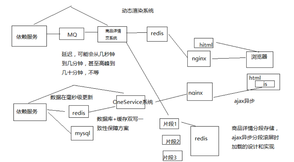 动的部分,都是走 ajax 异步请求的,不是走动态渲染的, 商品详情页统一服务系统(负责动的部分)