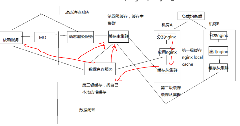 - 负载均衡 -> 分发层nginx -> 应用层nginx -> 多级缓存