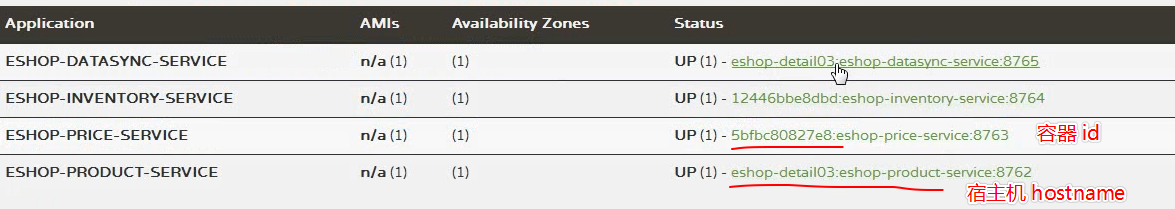 45f7ac13c9c5 192.168.99.20:2375/eshop-detail/eshop-eureka-server:1.0.0 "java -Djava.securit…" 34 minutes ago Up 34 minutes 0.0.0.0:8761->8761/tcp eshop-eureka-server