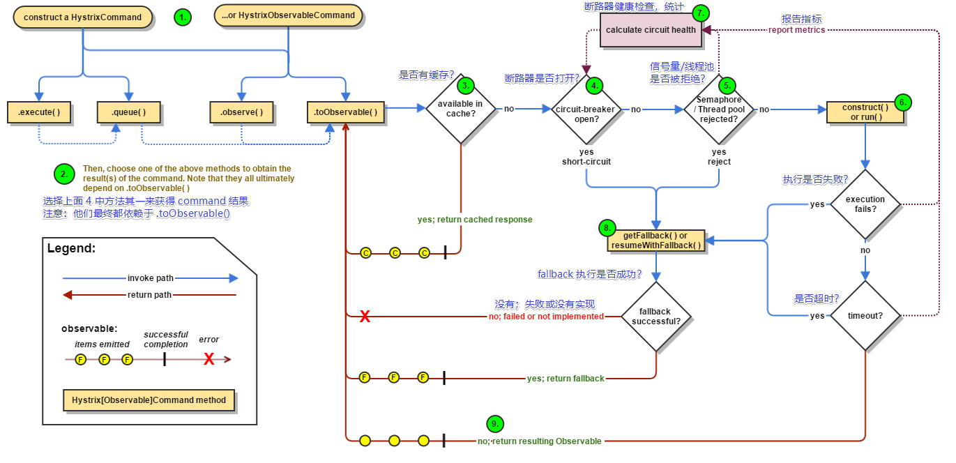 - 对于 HystrixCommand,会返回一个 Observable 对象,其中会发返回对应的结果