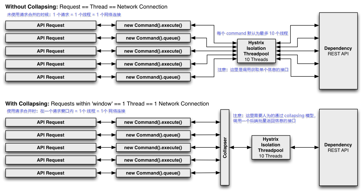 使用请求合并来减少并发执行 HystrixCommand 执行所需的线程数和网络连接数。而且请求合并是自动的,不会强制你手动协调合并哪些请求。