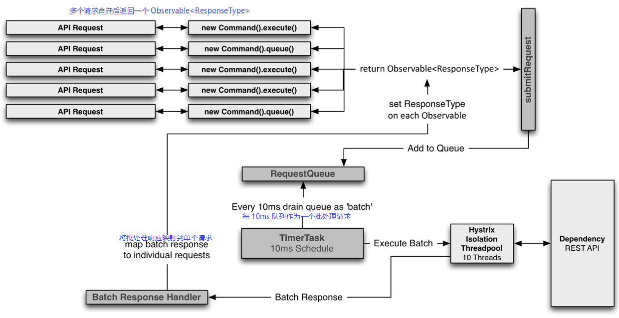 如果有几百个对象,遍历后依次调用每个对象的某个方法,可能导致发起几百次网络请求,基于 hystrix 可以自动将对多个对象模型的调用合并到一起
