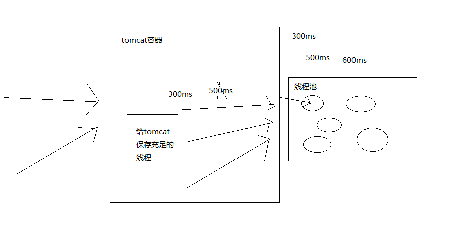 左侧为 tomcat 容器线程,右侧为 hystrix 线程池,如果设置的不合理, 将导致大量线程被阻塞在 hystrix 上,也就间接导致 tomcat 的线程被阻塞住, 这样就会导致 tomcat 没有更多的资源去处理其他的服务调用;