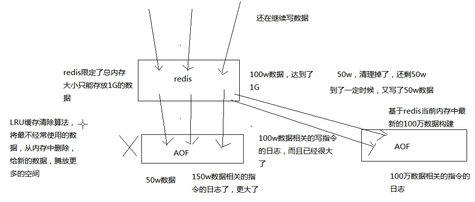 如上图,总结一下: aof 不断被追加,内存中数据有最大限制会自动淘汰,当 aof 中的数据大于内存中数据时,就会执行 rewrite 操作,生成新的 aof 文件