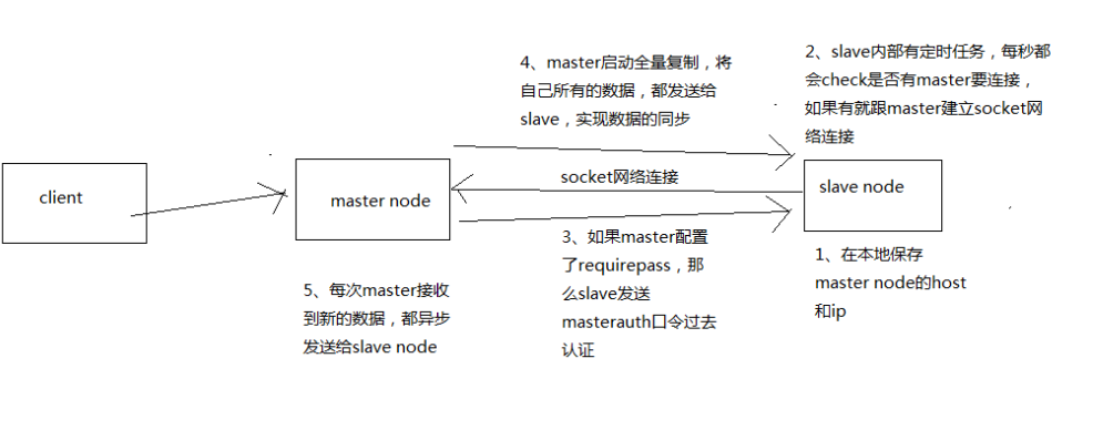 如果 master 设置了 requirepass,那么 salve node 必须发送 masterauth的口令过去进行认证
