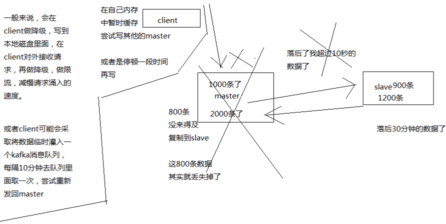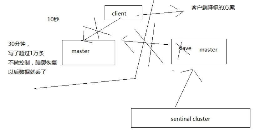 上图说明了脑裂时,master 拒绝写数据的时候,client 可能额外需要做的事情,client 是说使用方,不是 redis 的东西。
