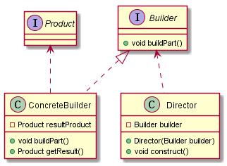 - Product:产品,表示被生成器构建的复杂对象,包含多个部件。