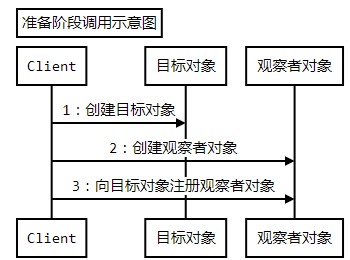在使用观察者模式时,会很明显的分成两个阶段,第一个阶段是准备阶段,也就是维护目标和观察者关系的阶段,这个阶段的调用顺序如图: