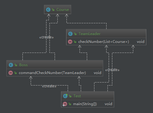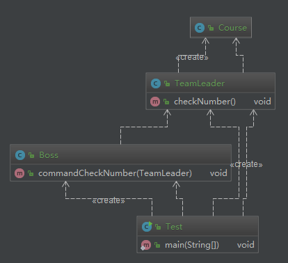 对于这个场景来说,boss 是不需要知道 Course 的,只要给 TeamLeader 下达指令,然后 TeamLeader 报告结果即可。