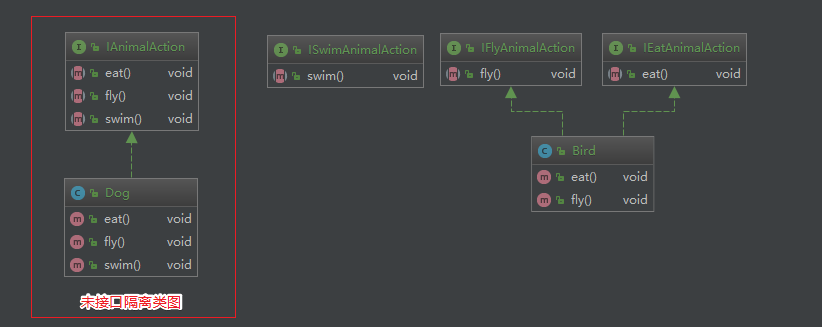 public class Bird implements IFlyAnimalAction, IEatAnimalAction {