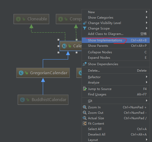 上图打开之后,默认只会显示 这一个类的父类,子类怎么显示呢?
