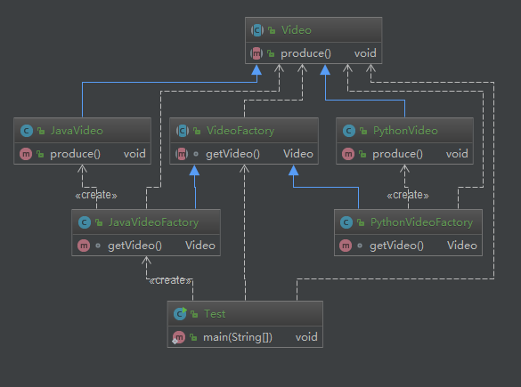 代码很简单,改造之前简单工厂为工厂方法。创建了抽象类 VideoFactory,具体的课程由专门的课程工厂去创建实例