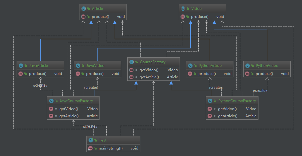 可以看到,客户端只依赖抽象工厂,然后获取一系列的产品,比如这里的 java 的产品